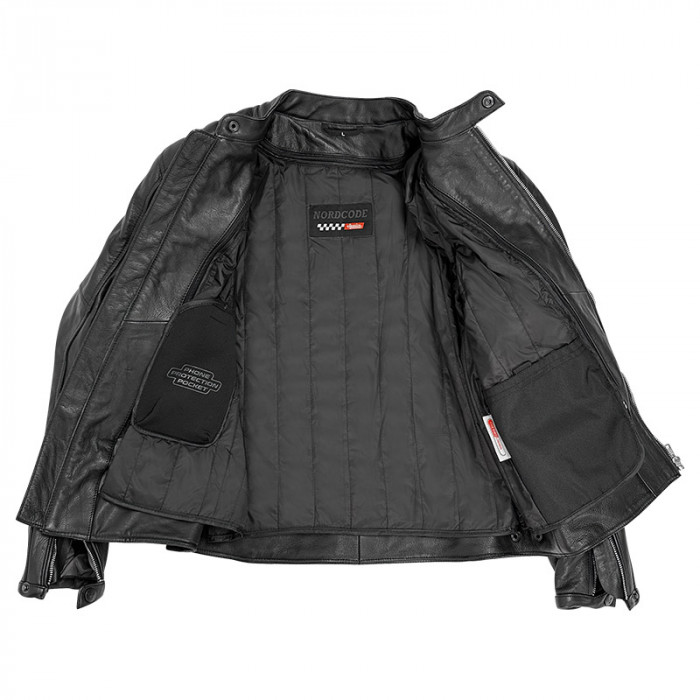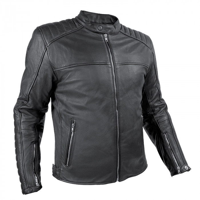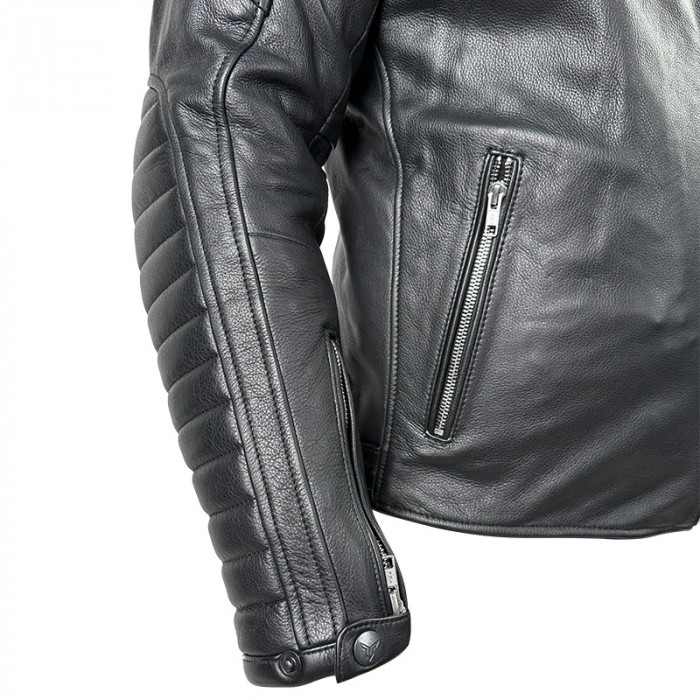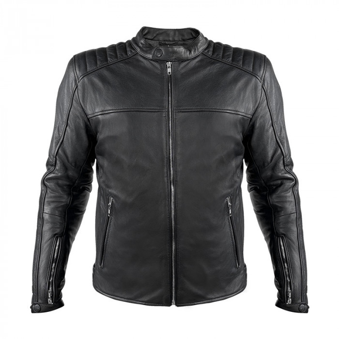 Ανδρικό δερμάτινο μπουφάν με κλασικό σχεδιασμό, κατασκευασμένο από γνήσιο δέρμα μοσχαριού υψηλής ποιότητας. Εξοπλισμένο με πιστοποιημένες προστασίες ώμου και αγκώνα, προστατευτικό πλάτης και αφαιρούμενη θερμική επένδυση, που μεγιστοποιούν την προστασία και την άνεση.
